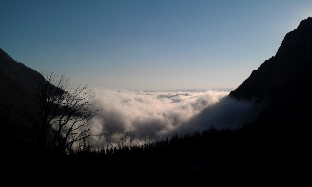 The whole valley was socked in from the storms, and we were above all that.  We slept at 9500 feet above sea level.